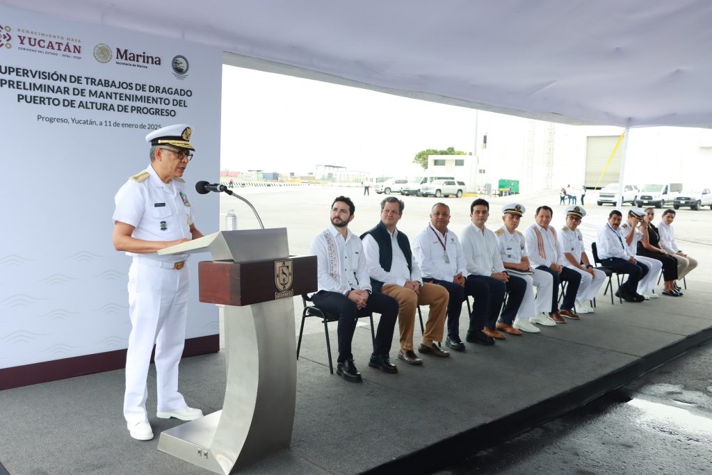 Progreso, Yucatán, a 11 de enero de 2025.- La Secretaría de Marina (Semar), en colaboración con el Gobierno del Estado de Yucatán, anunciaron el inicio de los trabajos de dragado preliminar y mantenimiento del Puerto de Altura de Progreso, consolidando a la entidad como un eje estratégico en el comercio marítimo global.
