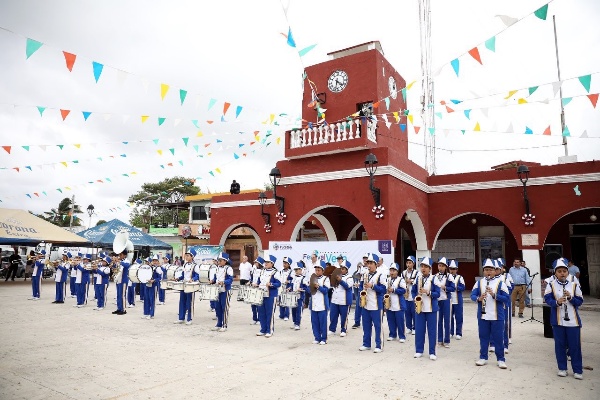 -El Festival inició con la limpieza de la playa de Celestún y posteriormente visitantes y pobladores disfrutaron de la puesta en escena de la banda de marcha Muuk Balam.