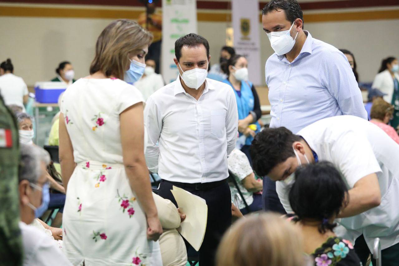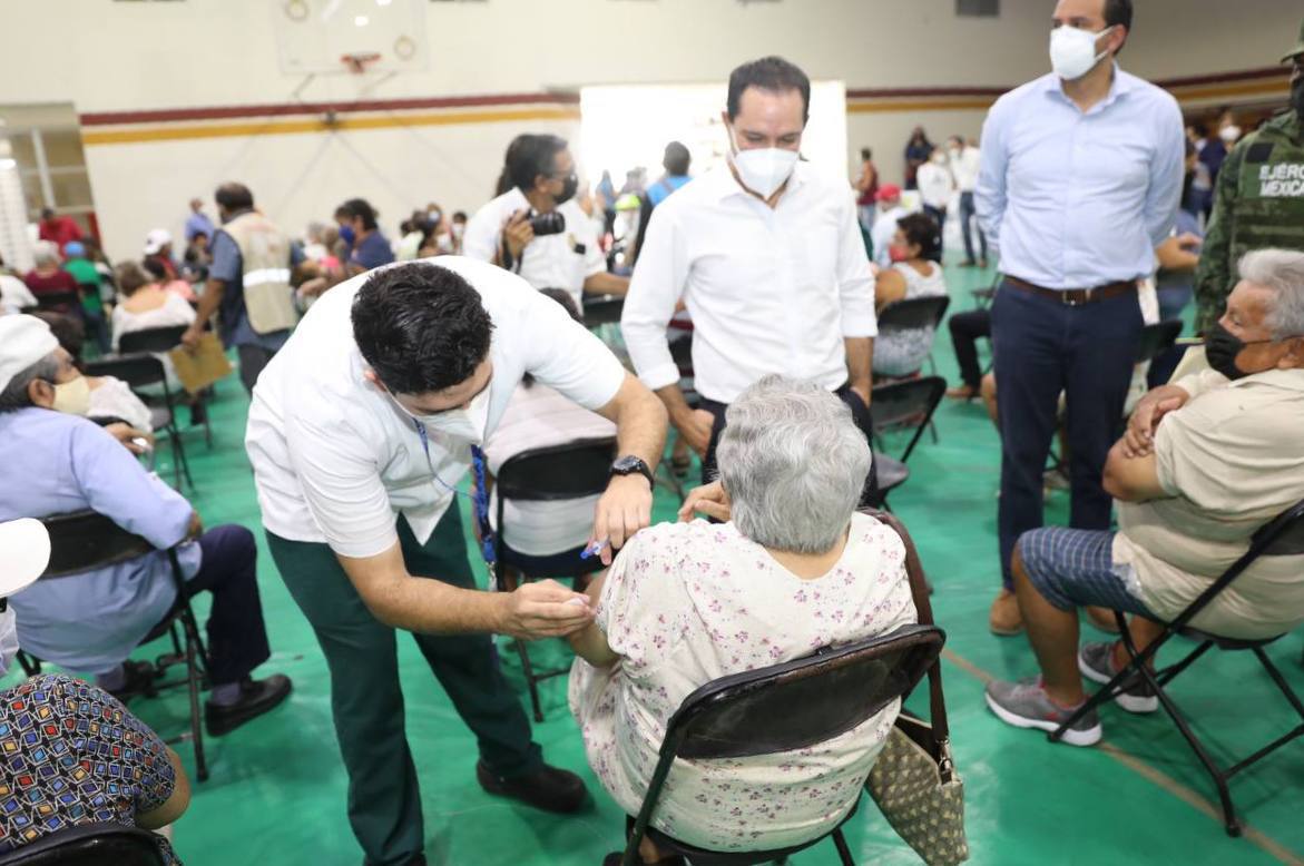 Sobre la aplicación de segundas dosis de AstraZeneca a personas de 60 años en adelante, el Gobernador recordó que se estarán aplicando 110,500 vacunas en las sedes habilitadas en el Instituto Tecnológico de Mérida (ITM), los macrocentros de vacunación habilitados en el Centro de Convenciones Yucatán Siglo XXI y el Multigimnasio “Socorro Cerón” de la Unidad Deportiva Kukulcán, el local de la Cámara Nacional de Comercio, Servicios y Turismo (Canaco-Servytur) de Mérida, la Escuela Superior de Artes de Yucatán (ESAY), el Sindicato de la Telefonistas, la Unidad Deportiva Villa Palmira, el 11 Batallón de Infantería de la Secretaría de la Defensa Nacional (Sedena) en la calle 42 sur y la Base Aérea Militar Número 8.