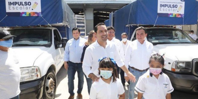 Estudiantes de escuelas públicas de nivel primaria de todo el estado y secundaria de municipios del interior y las comisarías de Mérida, contarán con todo lo necesario para el regreso a clases al poner en marcha el Gobernador Mauricio Vila Dosal la distribución de 267,931 paquetes de útiles escolares del programa “Impulso Escolar”, así como uniformes y desayunos escolares, que significa un ahorro de 2,850 pesos por cada hijo para las familias yucatecas, ante el inicio del ciclo escolar 2022-2023.