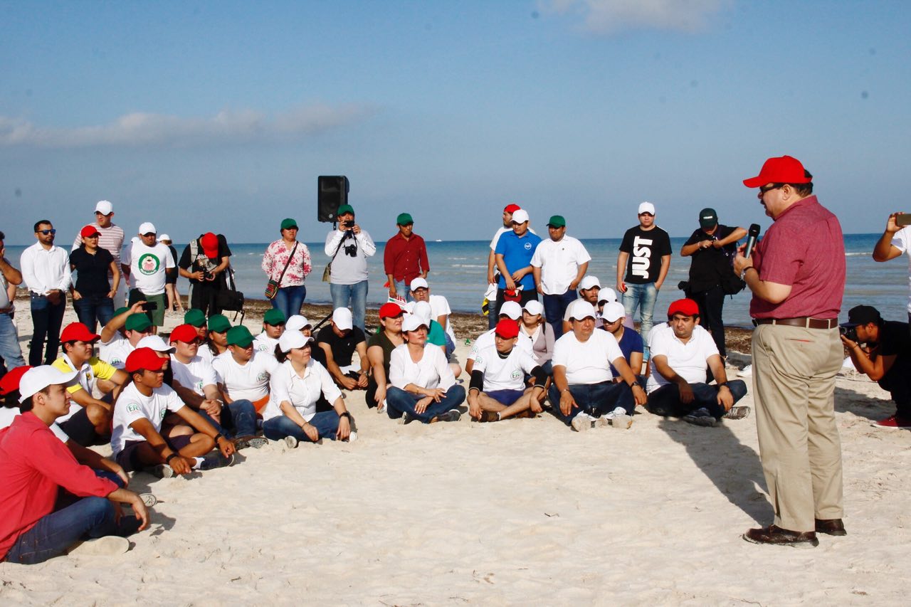Invitado por jóvenes priistas de dos agrupaciones, Expresión Juvenil Revolucionaria y Se Trata de los Jóvenes, el precandidato participó desde las 8 de la mañana en una serie de actividades relacionadas con el cuidado del ambiente, como la limpieza de playas, la siembra de palmeras y la señalización del sito de desove de tres especies de tortugas marinas en este sector de la costa norte.