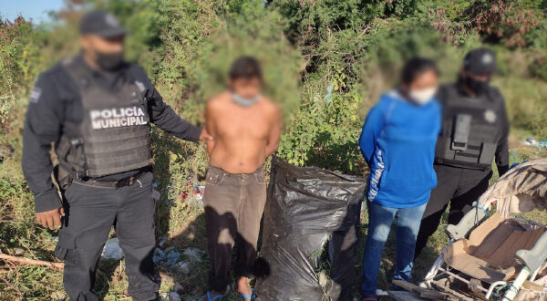 Para mala fortuna de la pareja cuando estaban arrojando basura y hasta una carriola fueron vistos por los agentes municipales y detenidos.