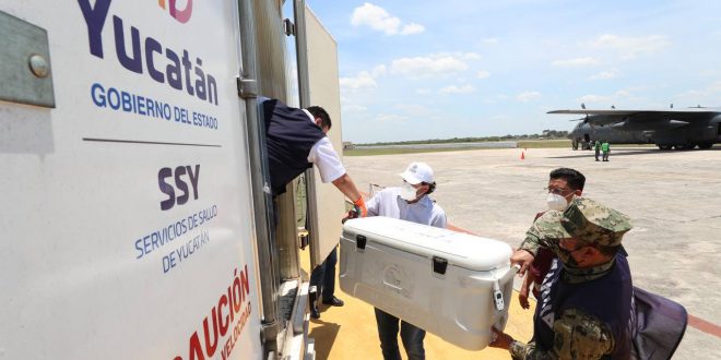 Por instrucciones del Gobernador Mauricio Vila Dosal, el titular de la Secretaría de Salud del estado (SSY), Mauricio Sauri Vivas, acudió a la Base Aérea Militar (BAM) Número 8 para supervisar el arribo de este cargamento, que llegó en una aeronave C-130 Hércules con matrícula 3616, proveniente de la Ciudad de México, la cual aterrizó a las 12:48 horas.