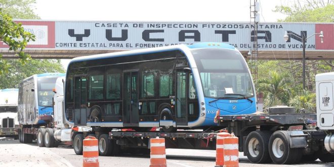 -Provenientes de España, esta tarde llegaron a territorio estatal las primeras 5 unidades que se utilizarán para la ruta La Plancha-Facultad de Ingeniería para ofrecer a las y los yucatecos un transporte público 100% eléctrico y único en Latinoamérica.