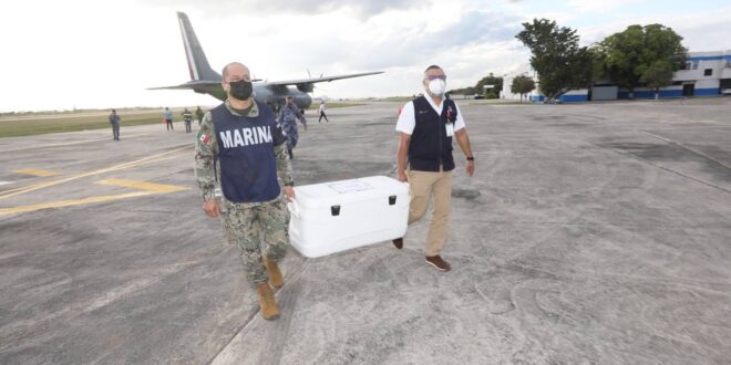Por instrucciones del Gobernador Mauricio Vila Dosal, el director de Prevención y Protección de la Salud de la SSY, Isaac Hernández Fuentes, acudió a la Base Aérea Militar (BAM) número 8 para supervisar el arribo de este nuevo lote, a bordo de una aeronave C27J Spartan de la Fuerza Aérea Mexicana matrícula 3205 proveniente de la Ciudad de México, que tocó territorio estatal a las 4:07 de esta tarde.