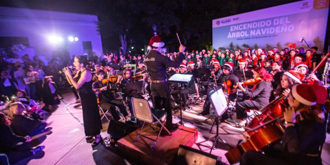 Mérida, Yucatán a 7 de diciembre de 2023.- Para enmarcar el inicio de las fiestas navideñas, el Centro Estatal de Bellas Artes presentó un programa artístico en el que los estudiantes de teatro, música y danza, mostraron su talento mediante la escenificación de la obra de teatro “Un cuento de Navidad”, que sirvió de preámbulo para el encendido del árbol navideño.