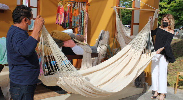 La funcionaria expresó que las y los creadores están contentos con el apoyo del mandatario al reactivar la economía, pues dependen 100 por ciento de esta actividad, y expuso que los productos han tenido una impresionante respuesta, por parte de las y los visitantes al dicho encuentro, que llevan hamacas, blusas bordadas en punto de cruz, guayaberas o joyería de filigrana.