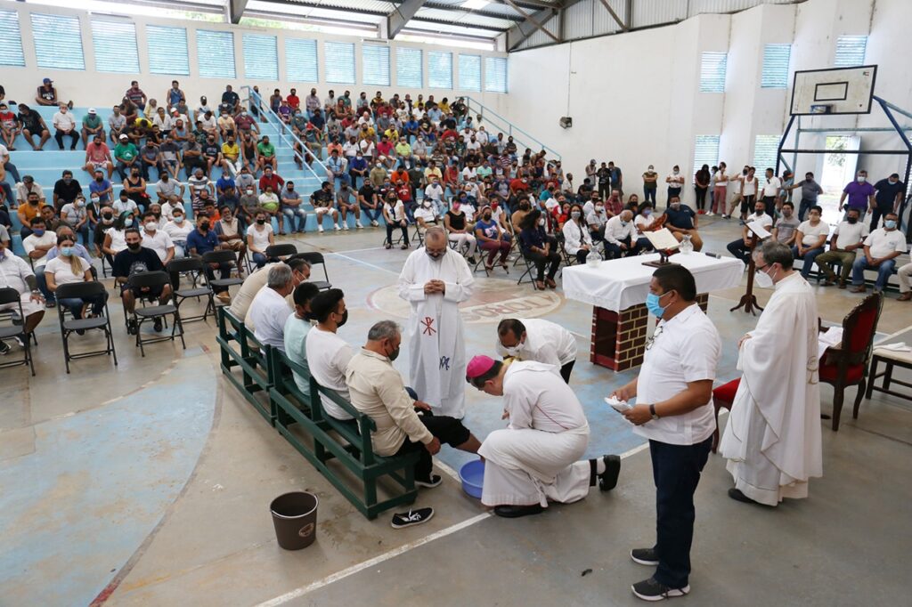 Con la participación de doce personas privadas de su libertad, quienes encarnaron a los apóstoles, el jerarca católico realizó la evocación de este gesto que hizo Jesús a sus discípulos, en señal de amor y servicio al prójimo en vísperas de su crucifixión y muerte, acción que marcó la primera actividad del Jueves Santo.