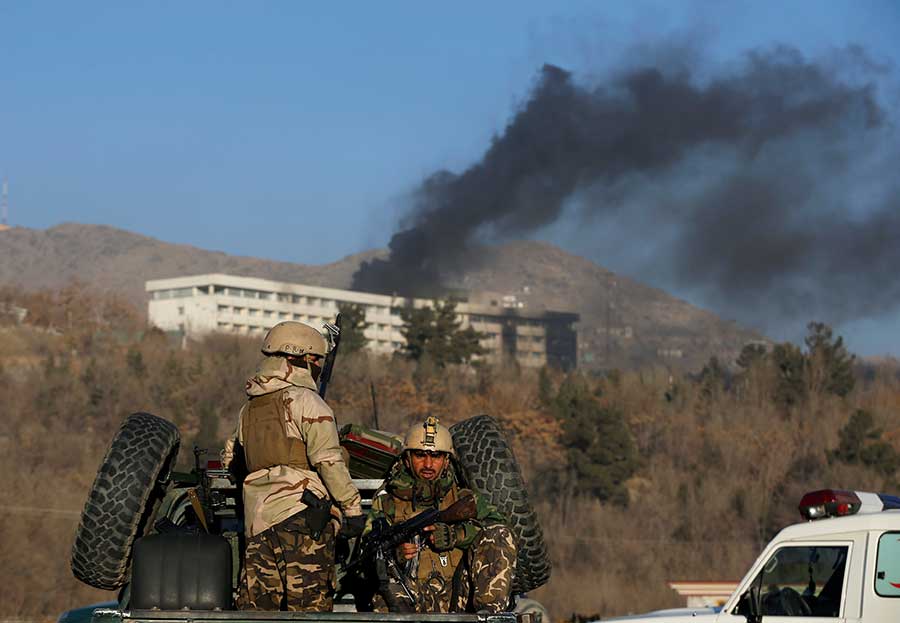 Un ataque del Talibán al Hotel Intercontinental de Kabul mató a por lo menos a 18 personas, incluyendo 14 extranjeros, y originó un enfrentamiento de más de 13 horas con las fuerzas de seguridad afganas hasta que murió el último agresor el domingo.