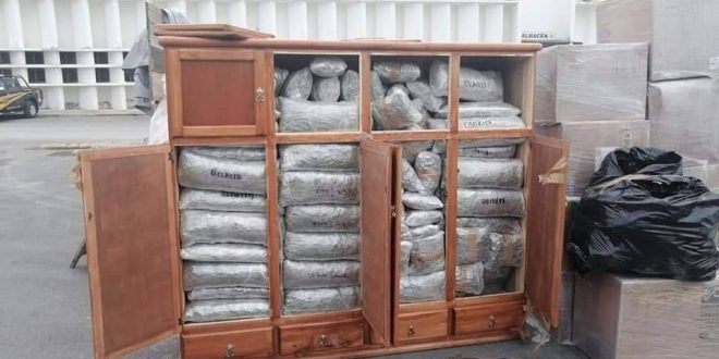 La droga estaba oculta en dos roperos de madera y en cajas de cartón transportados en una camioneta de redilas con placas del Estado de México, simulando una mudanza.