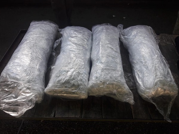 Se ubicó en el interior de una maleta, cuatro paquetes confeccionados con plástico transparente que contenían hierba seca con las características similares a la marihuana, con un peso aproximado de 4.472 kilogramos.