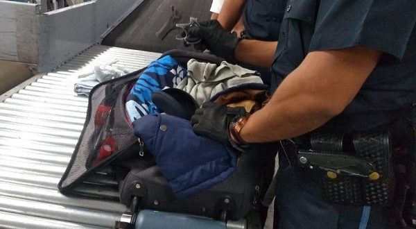 MÉRIDA, Yuc., 04 de marzo 2020.- Al efectuar el servicio de vigilancia en el área de ambulatorio del Aeropuerto Internacional de Mérida, integrantes de la Guardia Nacional atendieron un reporte de personal de seguridad privada sobre la detección de un objeto metálico con características de arma en una de las maletas.