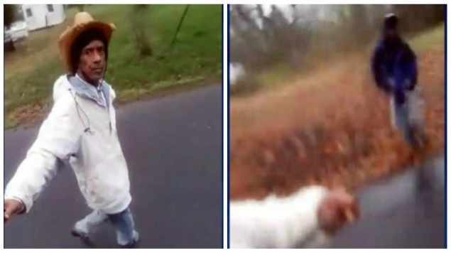El presunto asesino, identificado por la policía como Douglas Cleveland, es visto en la grabación pasando rápidamente sobre la cámara mientras se da a la fuga.