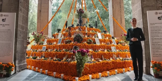 En un video difundido en redes sociales, Sheinbaum Pardo presentó la ofrenda que se instaló este año en Palacio Nacional. “Nos ayudaron artesanos y artesanas, lo hizo la Secretaría de Cultura y está dedicada a las heroínas de la patria”.