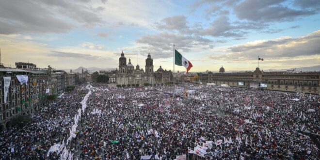 -17:28: “El litio será propiedad de la nación”, anunció el presidente mientras los asistentes gritaban “No estás solo” y “Es un honor estar con Obrador”.