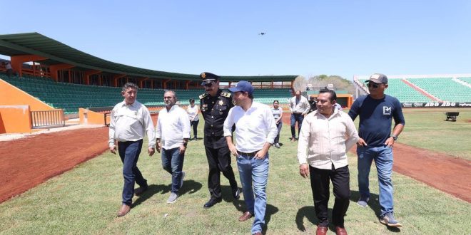 Vila Dosal, junto con los titulares de la Secretaría de Seguridad Pública (SSP), Luis Felipe Saidén Ojeda y Alejandro Orozco García, director General del Club de Leones Yucatán, el Gobernador constató las obras de este parque que ya está casi listo y el cual fue totalmente renovado desde el campo, hasta los baños, gradas, vestidores, pantallas, luminarias, y demás requerimientos que exige la LMB para albergar juegos de béisbol profesional.