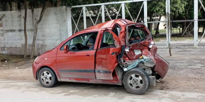 MÉRIDA, Yuc., 18 de octubre 2024.- Vaya choque por alcance recibió un automóvil tipo Matiz propiciado por un camión de volteo en la lateral exterior del Anillo Periférico de Mérida, cerca del entronque de la calle 86 hacia Dzununcán.
