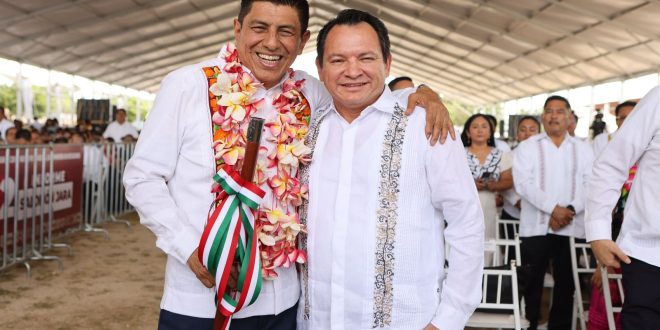 Juchitán, Oaxaca, a 15 de noviembre de 2024.- El Gobernador de Yucatán, Joaquín Díaz Mena, acudió como invitado especial al segundo informe de gobierno de Salomón Jara Cruz, realizado en Juchitán Oaxaca.