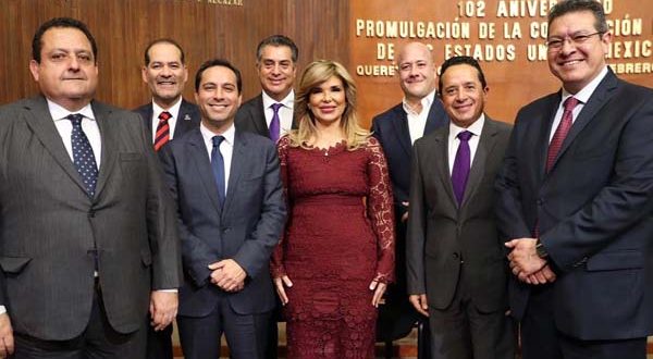 Junto a los representantes de los Poderes Legislativo, Porfirio Muñoz Ledo, y Judicial, Arturo Zaldívar, así como sus homólogos de las otras entidades federativas del país, el mandatario yucateco atestiguó el acto, en el que se refrendó que la Carta Magna es la consumación de un acto de justicia.
