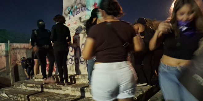 Mérida, Yucatán a 8 de marzo de 2024. – Tras registrarse varios hechos vandálicos que incluyeron pintas al monumento de Felipe Carrillo Puerto en Paseo de Montejo, la destrucción de vallas y pintas en el Palacio de la Música, pintas en el edificio de la Escuela Modelo y la quema de vallas frente a Palacio de Gobierno asociaciones feministas manifestaron su rechazo a dichos actos y acusaron la infiltración de grupos políticos durante la manifestación.