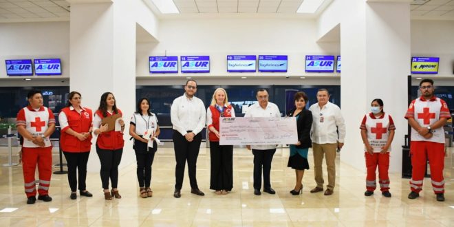 “Apoyamos por convicción porque vivimos en una sociedad donde todos debemos apoyarnos y que mejor apoyo que el que se da a través de una institución internacional reconocida y apreciada en el mundo entero; tenemos el compromiso, porque todos podemos necesitar a la Cruz Roja y por eso la queremos ayudar” apuntó Navarrete Muñoz, acompañado por el administrador del Aeropuerto, Oscar Carrillo Maldonado.