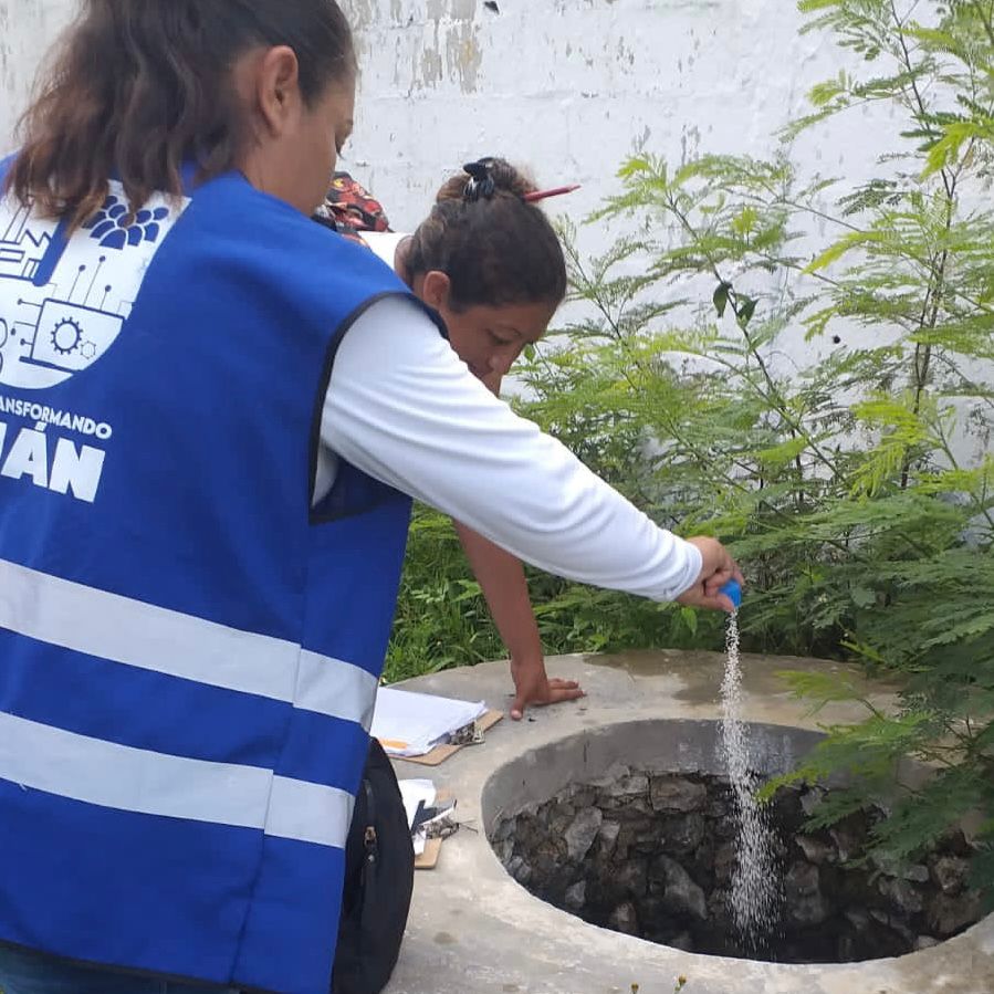Desde el inicio de la jornada se han desplegado cuadrillas en diferentes comisarias, fraccionamientos y colonias aplicando abate en alcantarillas y domicilios particulares para matar las larvas que anidan en recipientes, sumado a estos trabajos se están fumigando escuelas y espacios públicos para mantenerlos libres de moscos.