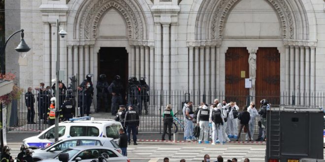 El atacante resultó herido por la policía y fue hospitalizado tras el crimen en la iglesia de Notre Dame, a menos de un kilómetro (media milla) del lugar donde otro agresor embistió con un camión en 2016 a la multitud reunida para celebrar el Día de la Bastilla, matando a decenas de personas.