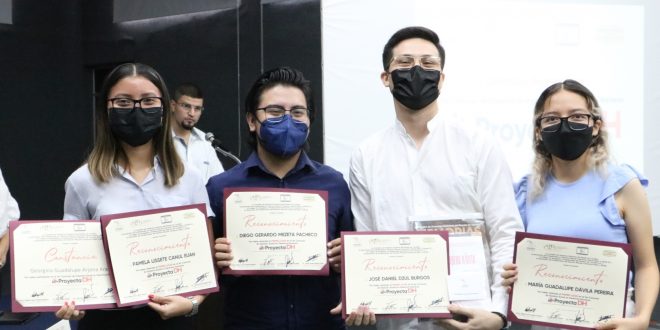 Mérida, Yuc., a 13 de julio de 2022.- Con el proyecto “La comunidad sorda y su acceso a los servicios públicos”, Georgina Guadalupe Arjona Arana, Pamela Lissete Canul Euán, María Guadalupe Dávila Pereira, José Daniel Dzul Burgos y Diego Gerardo Mezeta Pacheco, estudiantes de la Facultad de Derecho de la Universidad Autónoma de Yucatán, ganaron el primer lugar del 1er. Concurso de impacto social en materia de derechos Humanos “Proyecta DH”.