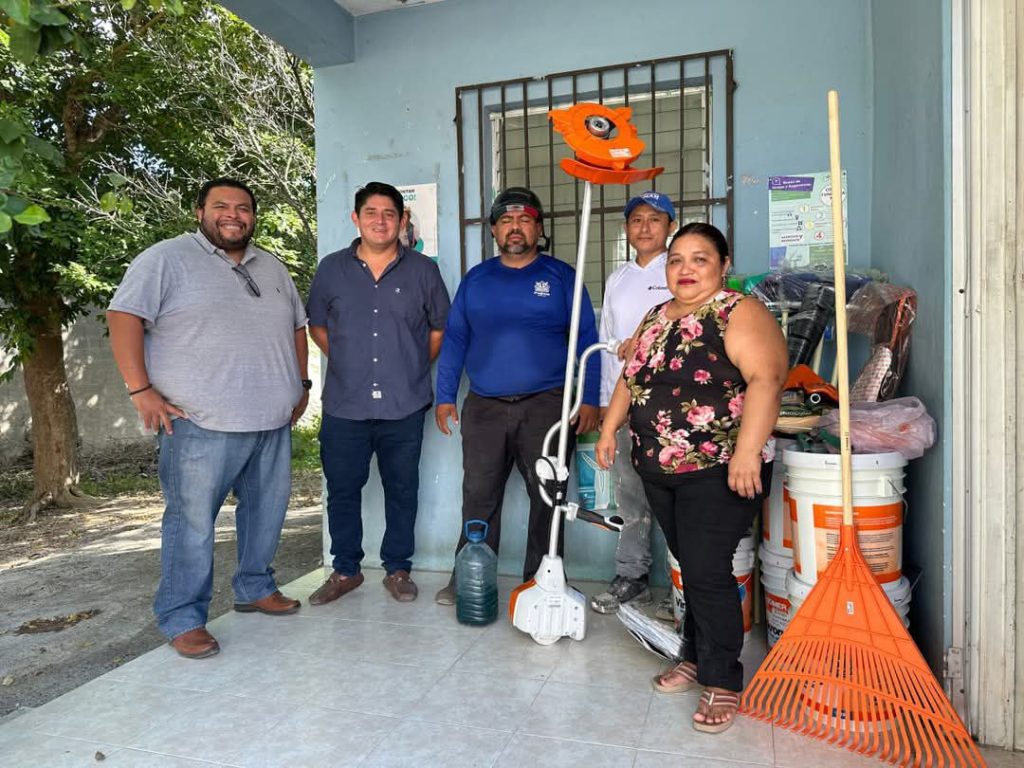Acompañado por el regidor de Fomento Económico y Comercio; Comisarías; Servicios Públicos; Cementerios y Transporte, Manuel Antonio Blanco Ordaz, Cruz Domínguez entregó en Paraíso una desbrozadora, cinco escobas, tres cubetas de pintura blanca, dos de pintura azul, cuatro rodillos y cinco brochas de 5 pulgadas.