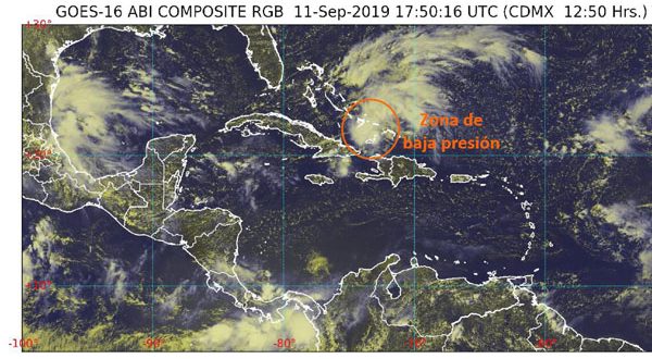 Una zona de baja presión que se ubica al noreste de la Isla de Cuba registra esta tarde 40% de probabilidad de desarrollo ciclónico y por el momento no representa riesgo para la Península de Yucatán, informa el OCPY de la Conagua.