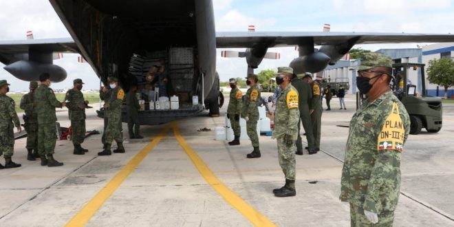 Mediante un vuelo logístico, aterrizó en la Base Aérea Militar No. 8 de esta ciudad, un avión Hércules C-130 perteneciente a la Fuerza Aérea Mexicana, transportando aproximadamente 5 toneladas de material y equipo médico, entre camas hospitalarias, ventiladores y monitores, para el equipamiento de las Unidades Operativas de Hospitalización y de Terapia Intensiva, del 11/o. Batallón de Infantería y 7/o. Batallón de Ingenieros de Combate, respectivamente.