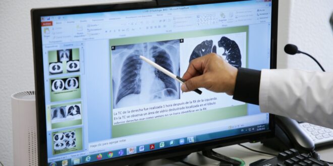 El especialista adscrito a la Coordinación de Hospitales de Segundo Nivel, señaló que para identificar opacidades en vidrio esmerilado, se toma una radiografía simple de tórax entre el primer y tercer día del diagnóstico, donde son visibles los cambios por la afectación pulmonar y se corroboran con tomografía computada.