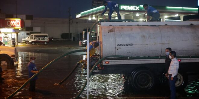 Asimismo, esta cuadrilla reforzó trabajos con dos pipas del Municipio y una del Gobierno del Estado con capacidad de 20 mil litros, dos bombas de desagüe y un volquete de tres toneladas.