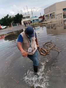 Mérida, Yucatán, a 5 de octubre de 2021.- El Ayuntamiento de Mérida, a través de la Dirección de Servicios Públicos Municipales, implementó un operativo extraordinario en la zona Poniente de la ciudad, para atender los reportes de vialidades inundadas por las copiosas lluvias de esta tarde.