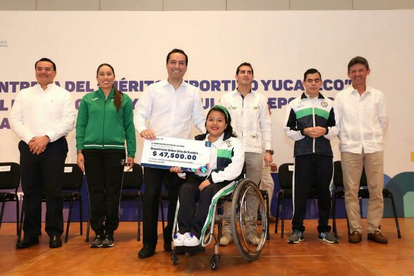 Mientras que, como parte del reconocimiento al Mérito Deportivo Yucateco 2018 se repartió 297,600 pesos entre entrenadores, guías y atletas. En la modalidad de conjunto se distribuyó 96,000 pesos entre las agrupaciones de relevos 4×100 metros juvenil mayor de ciegos y débiles visuales; la selección Yucatán 15-16 años de Hockey sobre pasto y al conjunto infantil Heymo-Kukulkán de Gimnasia. A nivel individual, se premió Águila Lara, a la jugadora de Hockey, Monstserrat Inguanzó Garay y a Achach Ramírez.