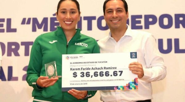 Mientras que, como parte del reconocimiento al Mérito Deportivo Yucateco 2018 se repartió 297,600 pesos entre entrenadores, guías y atletas. En la modalidad de conjunto se distribuyó 96,000 pesos entre las agrupaciones de relevos 4×100 metros juvenil mayor de ciegos y débiles visuales; la selección Yucatán 15-16 años de Hockey sobre pasto y al conjunto infantil Heymo-Kukulkán de Gimnasia. A nivel individual, se premió Águila Lara, a la jugadora de Hockey, Monstserrat Inguanzó Garay y a Achach Ramírez.