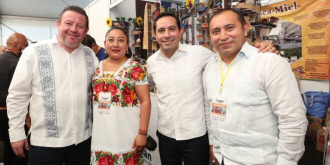 Junto con la gente, Vila Dosal visitó cada uno de los espacios, donde se cuenta con productos como salsas, guayaberas y blusas típicas, artesanías, zapatos, hamacas, repostería, joyería, condimentos, miel y sus derivados, bolsos y licores, entre otras cosas.