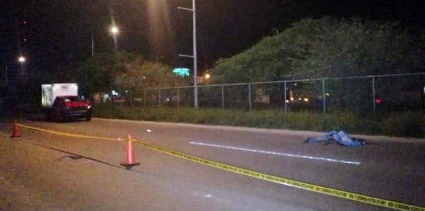 MÉRIDA, Yuc., 17 de octubre 2020.- Ayer en la noche, una persona del sexo masculino intentó atravesar la vía rápida y fue atropellado por una camioneta Nissan de color rojo con caja blanca, que lo aventó varios metros.