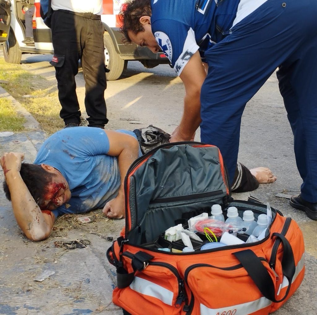 Al lugar arribaron paramédicos de la ambulancia Y-24 y policías de la SSP, en la patrulla 6647. Migue fue empaquetado para ser trasladado en dicha unidad al hospital General Ignacio García Tellez de Mérida.