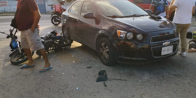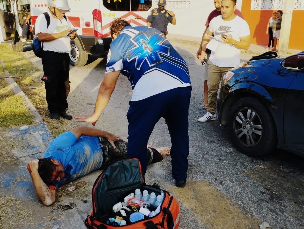 El obrero identificado como “Miguel” transitaba con preferencia de paso sobre la avenida Canek cuando fue arrollado por un auto Sonic, en el que el cafre pretendía tomar la calle 136.