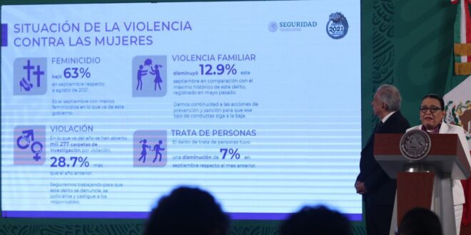 “Fue el septiembre con menos feminicidios en lo que va de este gobierno”, dijo.