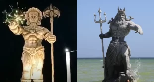 La estatua tuvo una inversión privada de 400 mil pesos y según sus creadores es capaz de soportar un hurucán categoría 5 A inicios de la actual temporada de lluvias se generó una gran polémica en Yucatán tras la inauguración de una escultura en honor al dios griego Poseidón en …