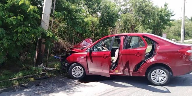 El accidente ocurrió alrededor de la 10 de la mañana cuando el guiador del auto Ford Figo, con placas YYG-495-C, transitaba sobre la calle 31, pero al llegar a la 74-A perdió el control y terminó estrellándose contra el poste de cemento de la CFE.