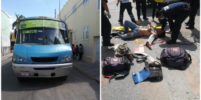 MÉRIDA, Yuc., 4 junio 2021.- Hoy a las 15:10 hrs la Policía Municipal de Mérida tomo conocimiento de un hecho de tránsito en la calle 61 x 68 en el que estuvieron involucrados el autobús placas A-03535Z conducido por Miguel R.R. y la motocicleta placas TRZ1U guiada por Gustavo C. de la C.