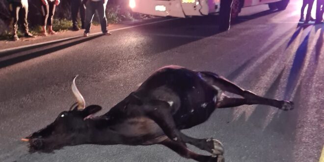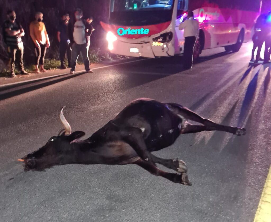 El operador de la unidad con número económico 5808, pisó al fondo el freno, pero acabó atropellando al semoviente; el animal de poco más de 300 kilos acabó muriendo al instante en medio de la carretera.