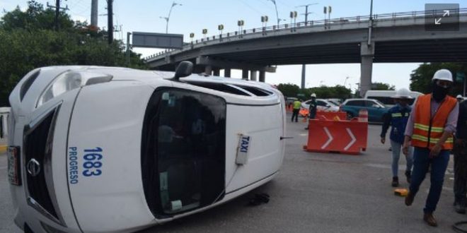 Se dió a conocer que el conductor del carro Kia quién provocó el accidente vial circulaba sobre la glorieta cuándo invadió el carril, provocando que el taxi con matricula 1683, perdiera el control y terminara en una aparatosa volcadura .