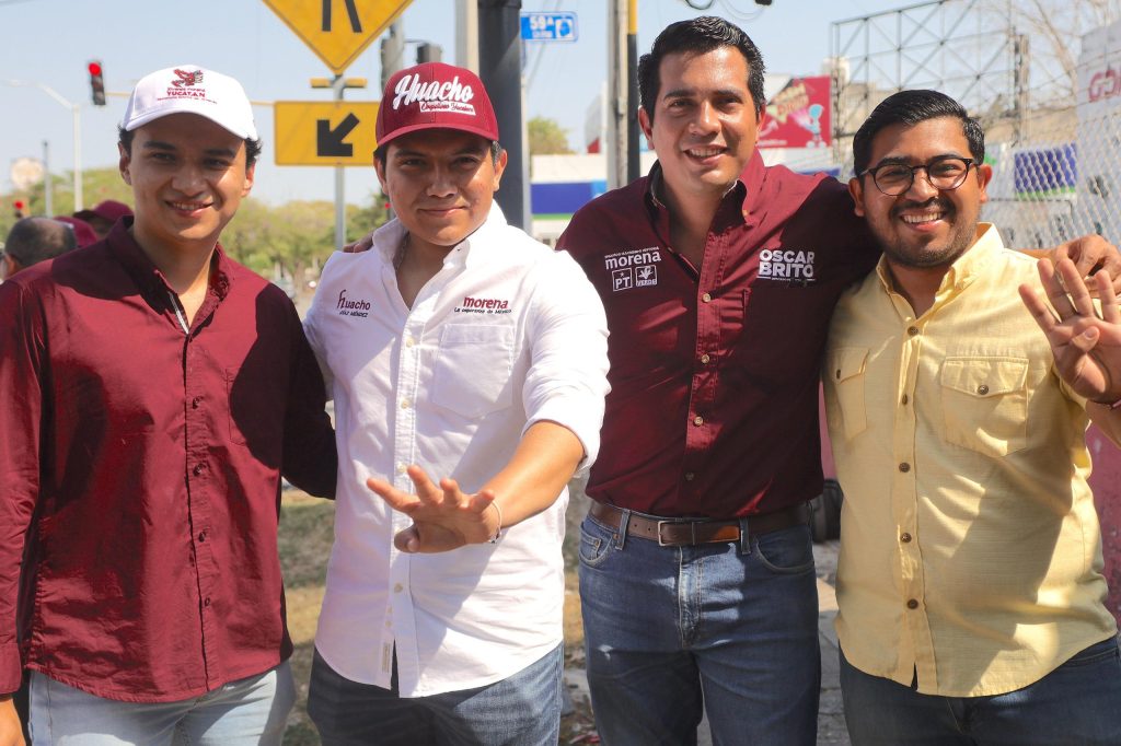 La ola guinda estuvo encabezada por Joaquín Díaz Méndez, hijo del candidato a la gubernatura del estado por la coalición Sigamos Haciendo Historia en Yucatán, Joaquín “Huacho” Díaz Mena y Óscar Brito Zapata, candidato a diputado por el Tercer Distrito Federal.