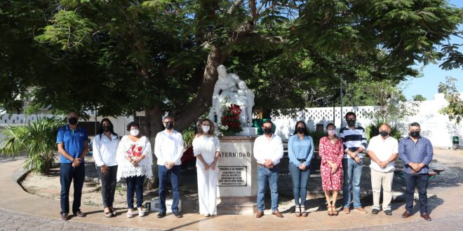 Progreso, Yucatán a 10 de mayo de 2021.- En el marco del Día de la Madre, esta mañana el presidente municipal interino de Progreso, el ingeniero José Alfredo Salazar Rojo y la Secretaria Municipal, Ivone Rassam Jiménez acudieron al parque a la madre para depositar arreglo floral al monumento con el mismo nombre, lugar al que también asistieron regidores del H. Ayuntamiento.