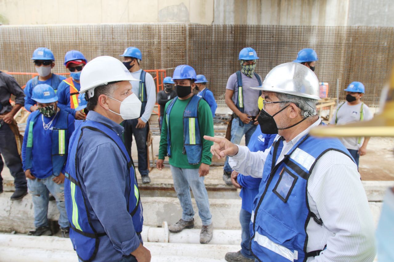 Por su parte Loría Magdub explicó que, a tres semanas de haber iniciado con las reparaciones del distribuidor vial, los trabajadores están a punto de concluir con las demoliciones e intervenciones en las paredes laterales donde se instalará la nueva cisterna, por lo que ya se pueden ver avances en la estructura y en el colado de los muros adosados.