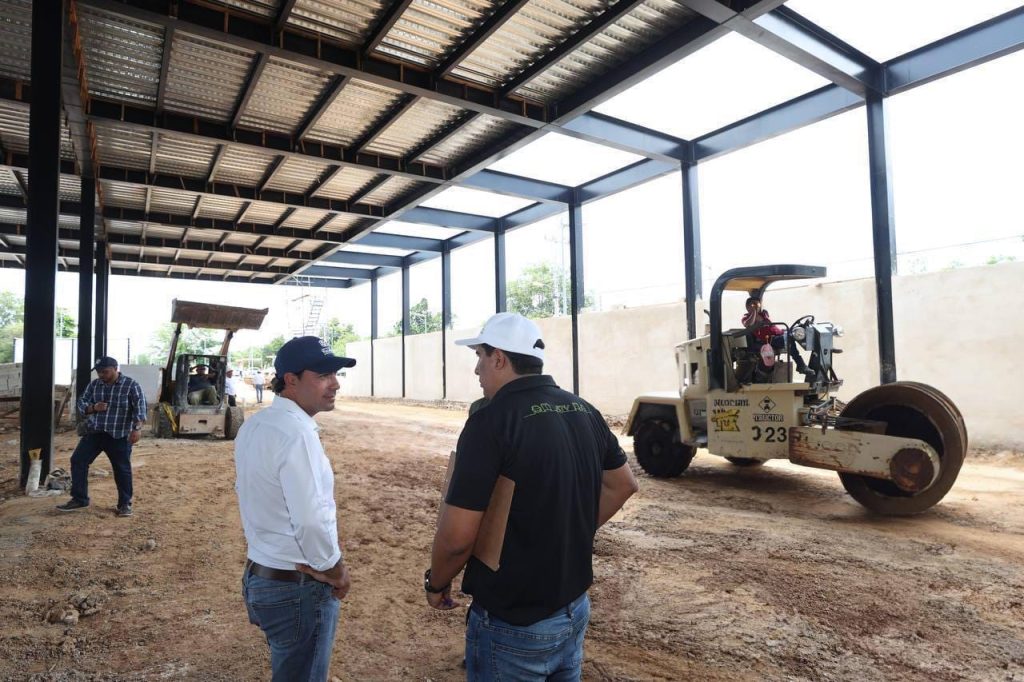 En compañía del director general del Instituto para la Construcción y Conservación de Obra Pública en Yucatán (Inccopy), Virgilio Crespo Méndez, el Gobernador constató el progreso de los trabajos que se efectúan en ese punto y que incluyen la construcción de mampostería, colocación de columnas, trabes y conexiones metálicas; cimentación de muros, cadenas y castillos; así como de la estructura de acero e instalación hidrosanitaria.